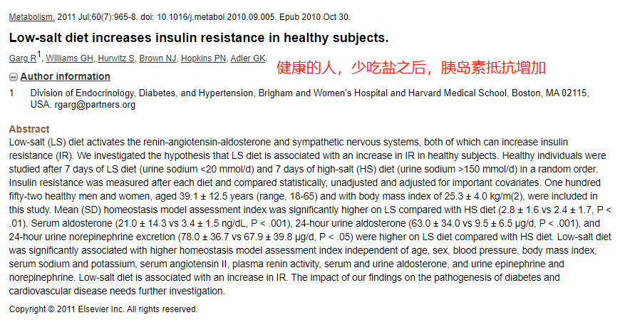 事实上,特别是糖尿病人,少盐的风险更大一些。[④](https://www.ncbi.nlm.nih.gov/pubmed/21036373)