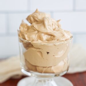 Add in the vanilla extract, instant coffee, and water, then turn the mixer back on. Let it beat for another 5 or so minutes until itās fluffy to your liking!