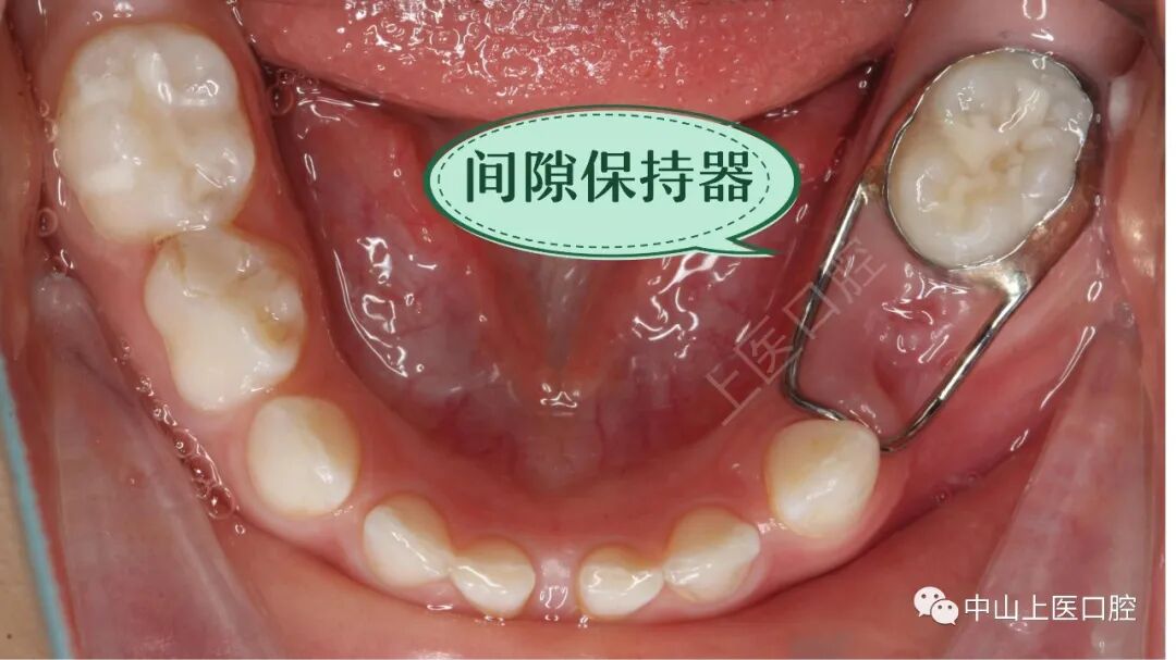 (间隙保持器戴入完成,保持每三个月复查一次。)