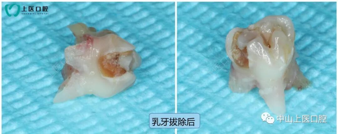(拔除后的小乳牙,牙根已经发生吸收)