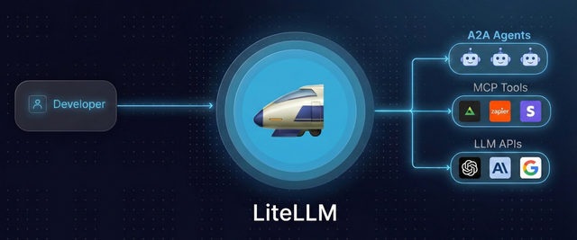 LiteLLM is a unified gateway for **LLMs, agents, and MCP** โ you don't need a separate agent or MCP gateway. One endpoint for 100+ models, A2A agents, and MCP tools.