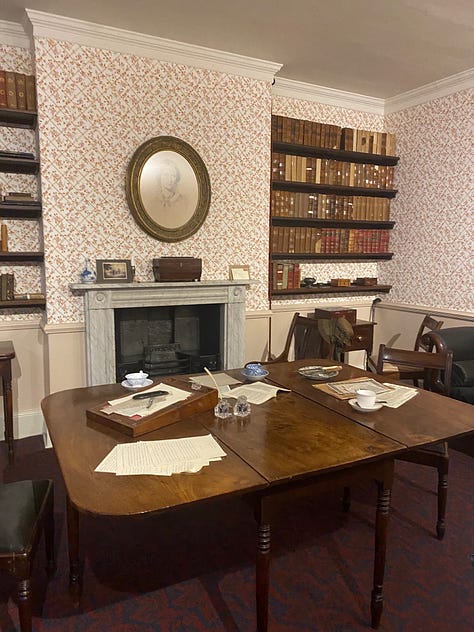 The Haworth Post Office looking very cute; the table where the Brontës wrote (!!!); me, trying to be wistful