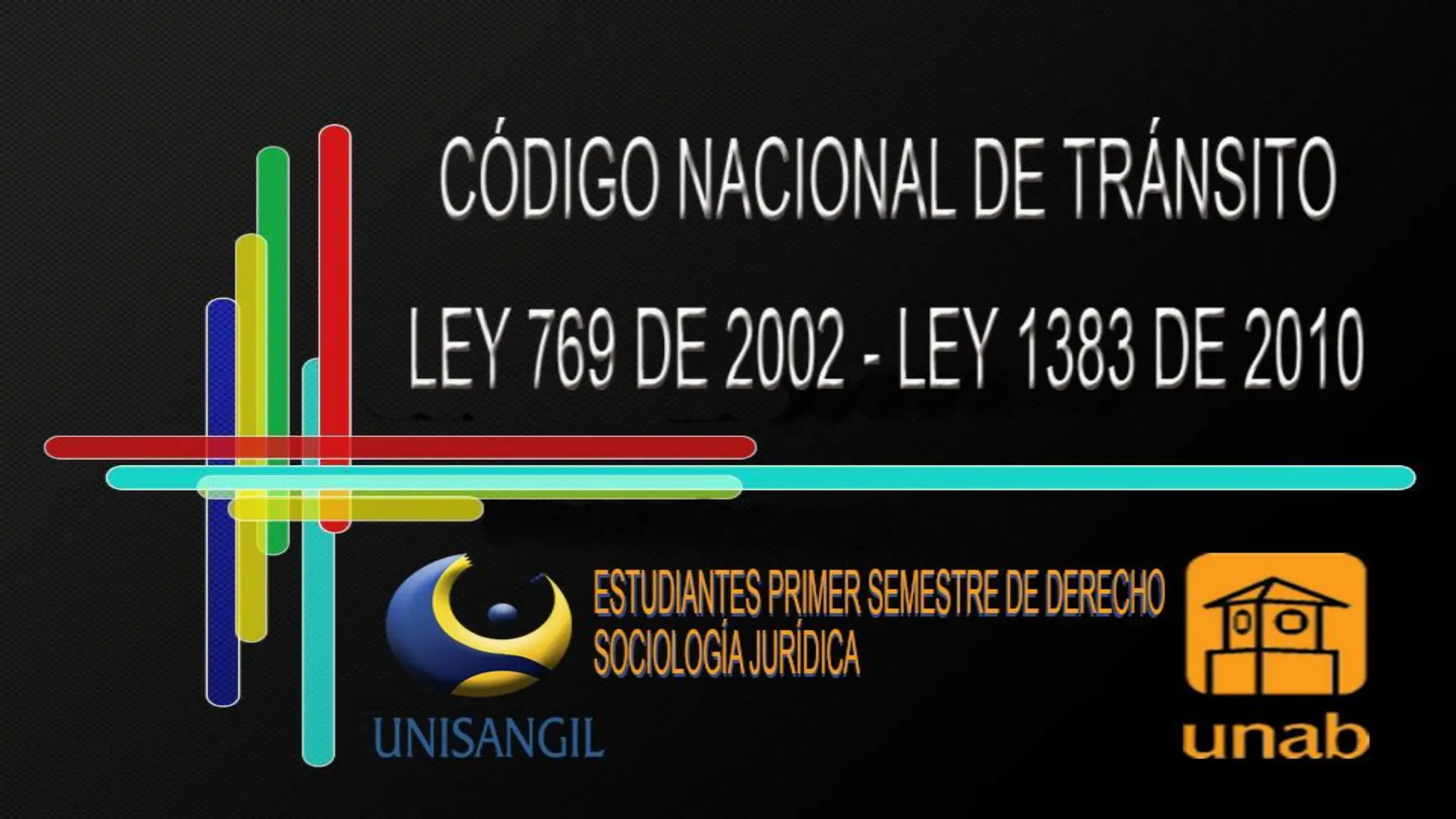 [LEY 1383 DE](https://es.slideshare.net/slideshow/codigo-nacional-de-transito-de-colombia-pdf/270560249#9)2010 “ POR LA CUAL SE REFORMA LA LEY 769 DE 2002, CODIGO NACIONAL DE TRANSITO, Y SE DICTAN OTRAS DISPOSICIONES” Dichas modificaciones, con las que cuenta este proyecto están contenidas en veintinueve (29) artículos y uno (1) de vigencias y derogatorias, para un total de treinta artículos, concretamente, las modificaciones y adiciones que se incorporaron tuvieron que ver con necesarias actualizaciones de la normatividad, como incluir más requisitos que se deben exigir y cumplir para la expedición de la Licencia de Conducción, para el funcionamiento de los centros de reconocimiento de conductores, los cuales están contenidos en la Ley 1383 de 2010, el artículo 26 de esta norma el cual establece los casos en donde se suspende o cancela la licencia, que por un error se suprimió la reincidencia como causal de suspensión en esta ley y al régimen de sanciones que se le debe aplicar a los Centros de Enseñanza Automovilística, el cual hoy no está definido en la referida Ley 769 de 2002, Código Nacional de Tránsito.