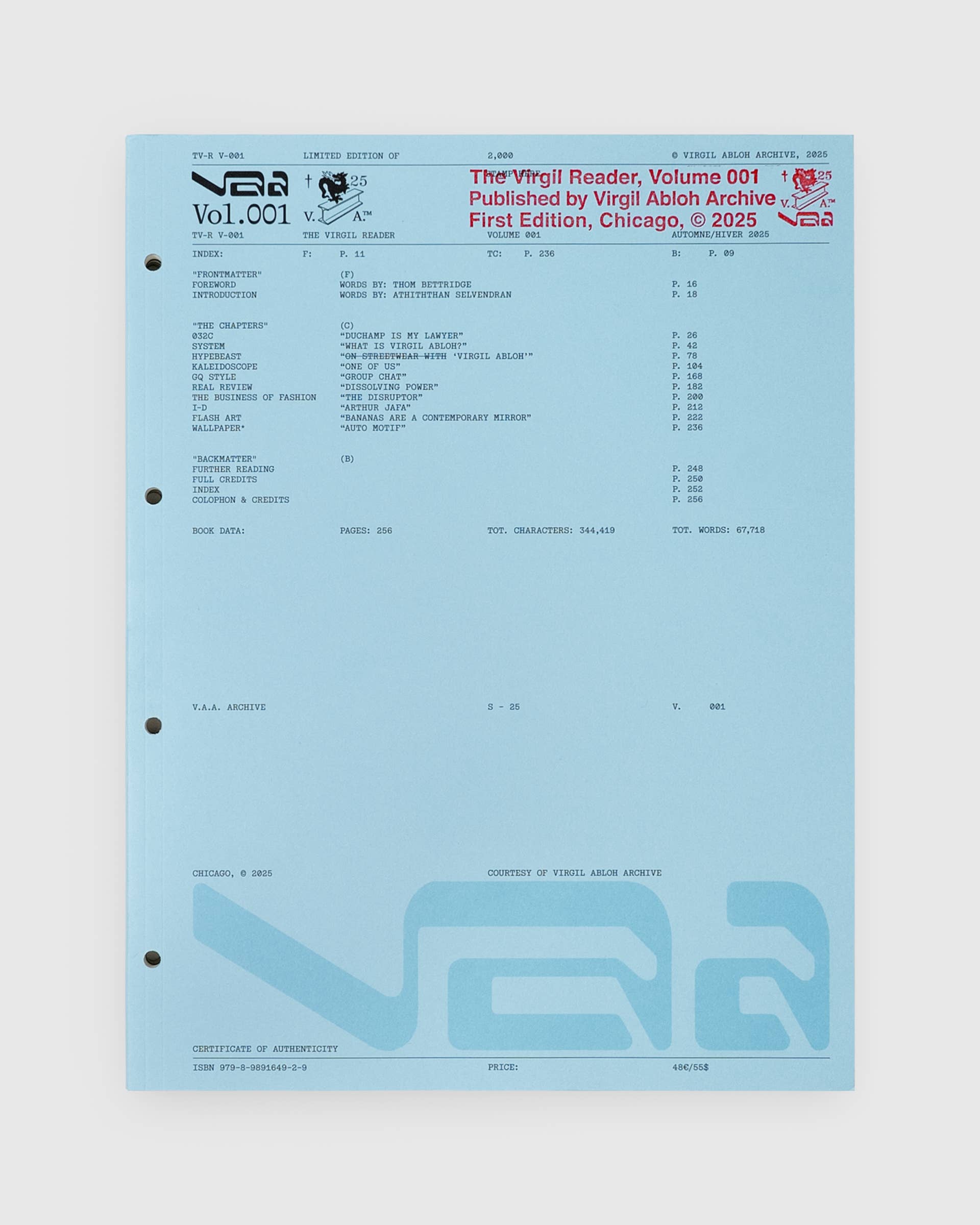 ### Virgil Abloh Archive launches print publication *The Virgil Reader Vol. 001*