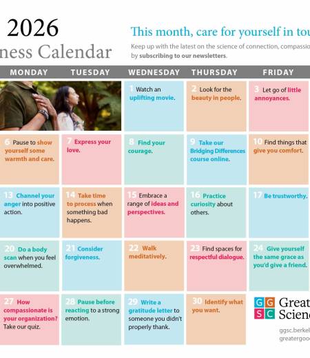 [Keep Up with the GGSC Happiness Calendar Care for yourself in tough times this month](https://greatergood.berkeley.edu/article/item/your_happiness_calendar_for_april_2026)