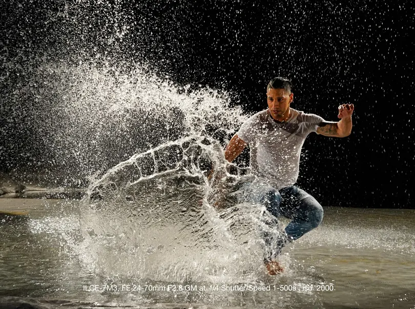 We had several different shooting scenarios while we were testing these cameras. The first evening was kind of an action and fashion setup, as seen in some of the images above. The next day, we returned to the studio and had the chance to shoot a rain setup and more fashion. Then we did a culinary session that evening. The following day, we went to the desert to shoot dune buggies and then, in the afternoon, shot from helicopters. The following images are broken into these categories and captions with each explaining the shooting setup.
