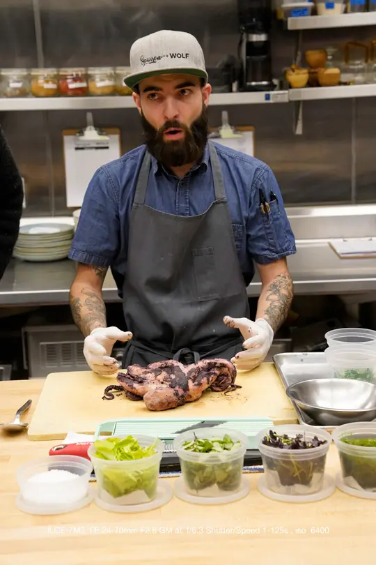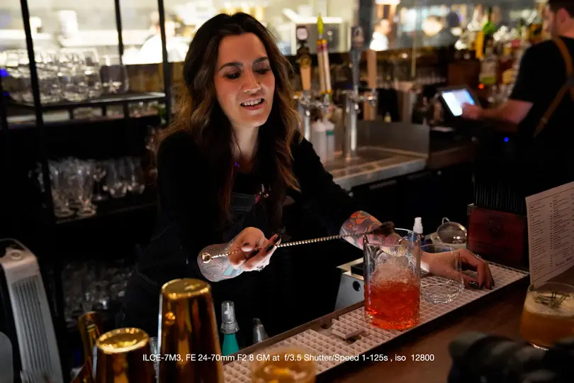 We had an evening out to dinner where we could spend some time shooting the dinner prep as well bartenders at work. It was very low light and provided a chance to try out high ISO, IBIS, and slow shutter speeds.