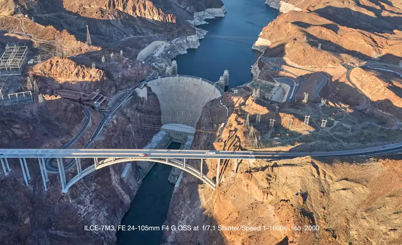 We ended our day with a several hour helicopter flight. Our flight went to Valley Of Fire with an overflight of Hoover Dam and the Las Vegas strip. For this, I set the camera to Manual and set the shutter speed to 1240th of a second, f/5.6 and let ISO stay on auto. The helicopter had the doors off so we were shooting with wind and vibration. The images look great and I really want Capture One to process the RAWs as I thinki there is so much more I could by working with the RAW.