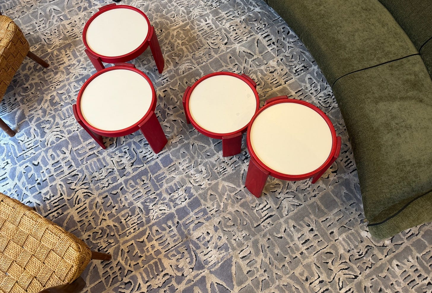 We aim to become a travel address, but also a local hang-out, with the living room area (and my mumās Gianfranco Frattini for Cassina stackable coffee tables) being center stage.