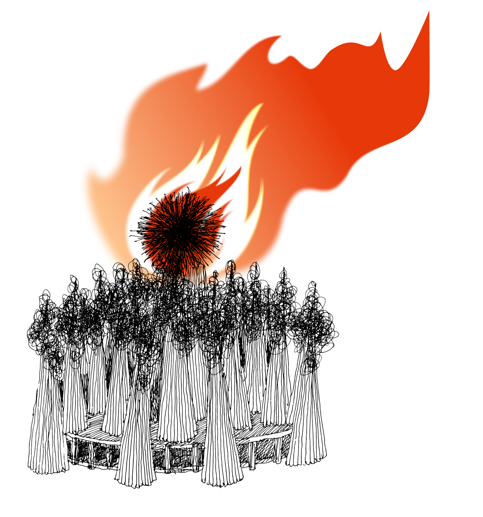 «Вавилонская башня» — символ разлада между людьми. Предавая ее огню, мы верим, что каждый найдет в себе силы обратиться к миру с ближним.