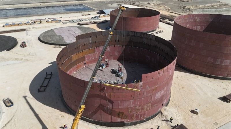 The total tank farm size will be 100,000 m³, consisting of seven tanks.