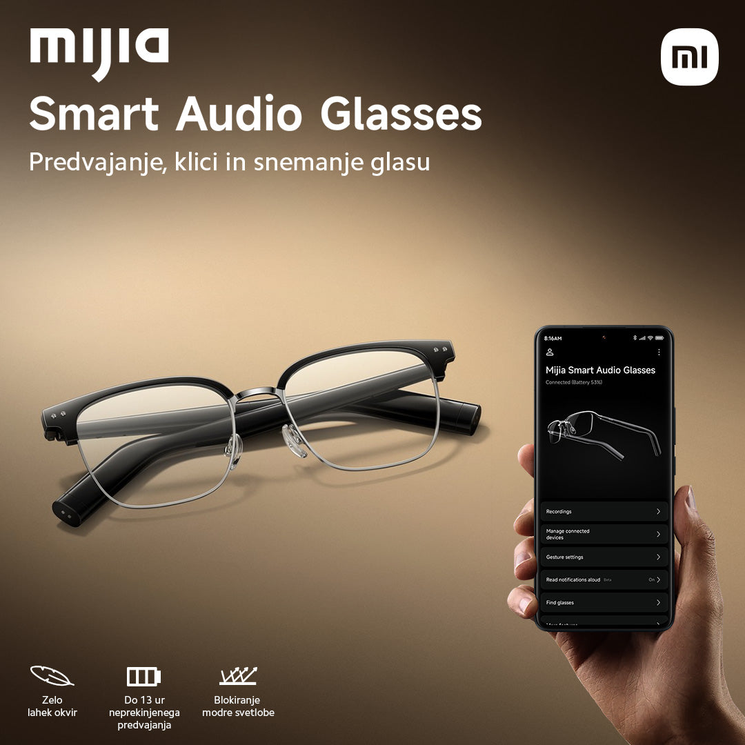 [Slušalke in zvočniki](https://mi-store.si/collections/slusalke-in-zvocniki?filter.v.availability=1) [Slušalke](https://mi-store.si/collections/slusalke?filter.v.availability=1) [Bluetooth zvočniki](https://mi-store.si/collections/bluetooth-zvocniki-1?filter.v.availability=1) [Pametna avdio očala](https://mi-store.si/products/xiaomi-mijia-smart-audio-glasses-browline) [Soundbar](https://mi-store.si/collections/soundbar?filter.v.availability=1) [Karaoke mikrofon](https://mi-store.si/products/xiaomi-karaoke-microphone)