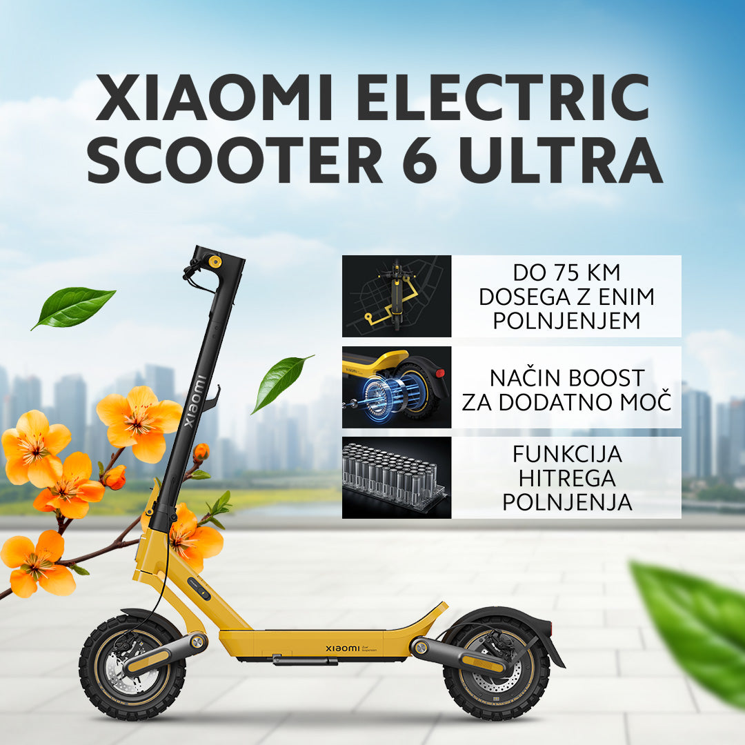 [Električni skiroji Xiaomi](https://mi-store.si/collections/elektricni-skiroji) [Xiaomi Electric Scooter 6 Ultra](https://mi-store.si/products/xiaomi-electric-scooter-6-ultra) [Xiaomi Electric Scooter 6 Max](https://mi-store.si/products/xiaomi-electric-scooter-6-max) [Xiaomi Electric Scooter 6 Pro](https://mi-store.si/products/xiaomi-electric-scooter-6-pro) [Xiaomi Electric Scooter 6](https://mi-store.si/products/xiaomi-electric-scooter-6) [Xiaomi Electric Scooter 6 Lite](https://mi-store.si/products/xiaomi-electric-scooter-6-lite) [Xiaomi Electric Scooter 5 Max](https://mi-store.si/products/xiaomi-electric-scooter-5-max) [Xiaomi Electric Scooter 5 Plus](https://mi-store.si/products/xiaomi-electric-scooter-5-plus) [Xiaomi Electric Scooter Elite](https://mi-store.si/products/xiaomi-electric-scooter-elite) [Xiaomi Electric Scooter 4 Lite 2nd Gen](https://mi-store.si/products/xiaomi-electric-scooter-4-lite-2nd-gen)