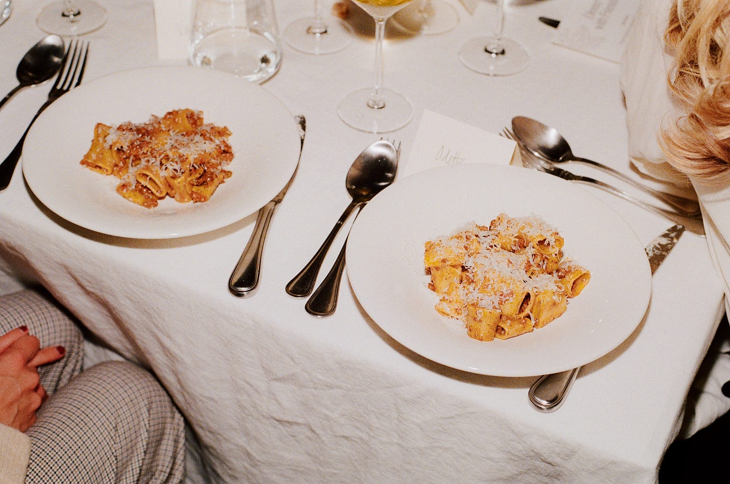 At a [brand dinner I hosted last year](https://odette.substack.com/p/delicata-fritti-with-herb-labneh), we served this milk-braised bolognese with mezze rigatoni. The perfect pasta shape for this sauce. When I was working on the menu with [Michelin-trained chef Feisal Lagos](https://www.feisal.co/), I really wanted food that made people feel relaxed and welcome.