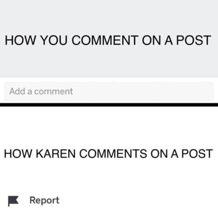 Karens are easy to spot. They usually have a tiny, shitty dog, the haircut that defined an entitled generation, and are potentially in the middle of [reporting someone](https://ruinmyweek.com/reddit/aita/slut-shaming-aunt/). I like to think funny [Karen memes](https://pleated-jeans.com/2020/06/29/st-louis-karen-and-ken/) are the internet’s way of getting back for all the times a [customer complained](https://pleated-jeans.com/2020/10/13/eat-at-home-rude-customers/) to their manager.