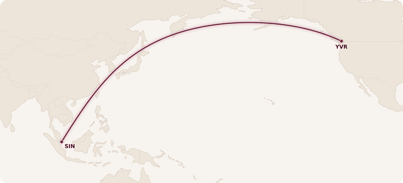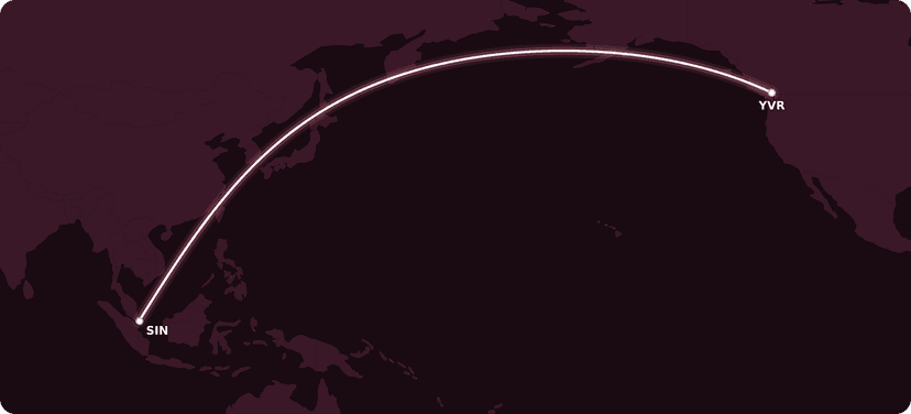 SQ28 Singapore to Vancouver, departing 9:15am and arriving 7:30am