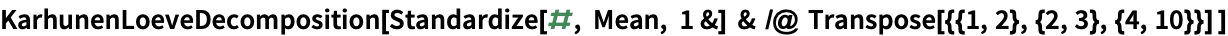 `Wolfram Research (2010), KarhunenLoeveDecomposition, Wolfram Language function, https://reference.wolfram.com/language/ref/KarhunenLoeveDecomposition.html (updated 2015).`
