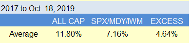 Looking at the data a little differently, the next chart shows how sector scores differ by market cap. For example, mid-cap consumer goods could be a better source of alpha than large-cap or small-cap consumer goods; and large-cap utilities is a better hunting ground than small-cap utilities.