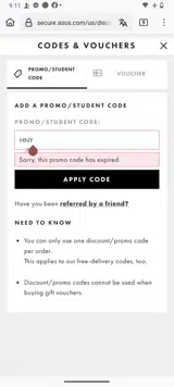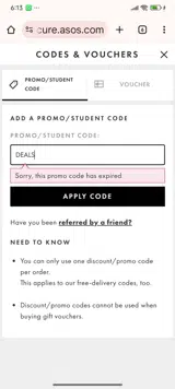 - The code is linked to a particular email address (such as those sent directly from ASOS), so you must be logged in with that account.