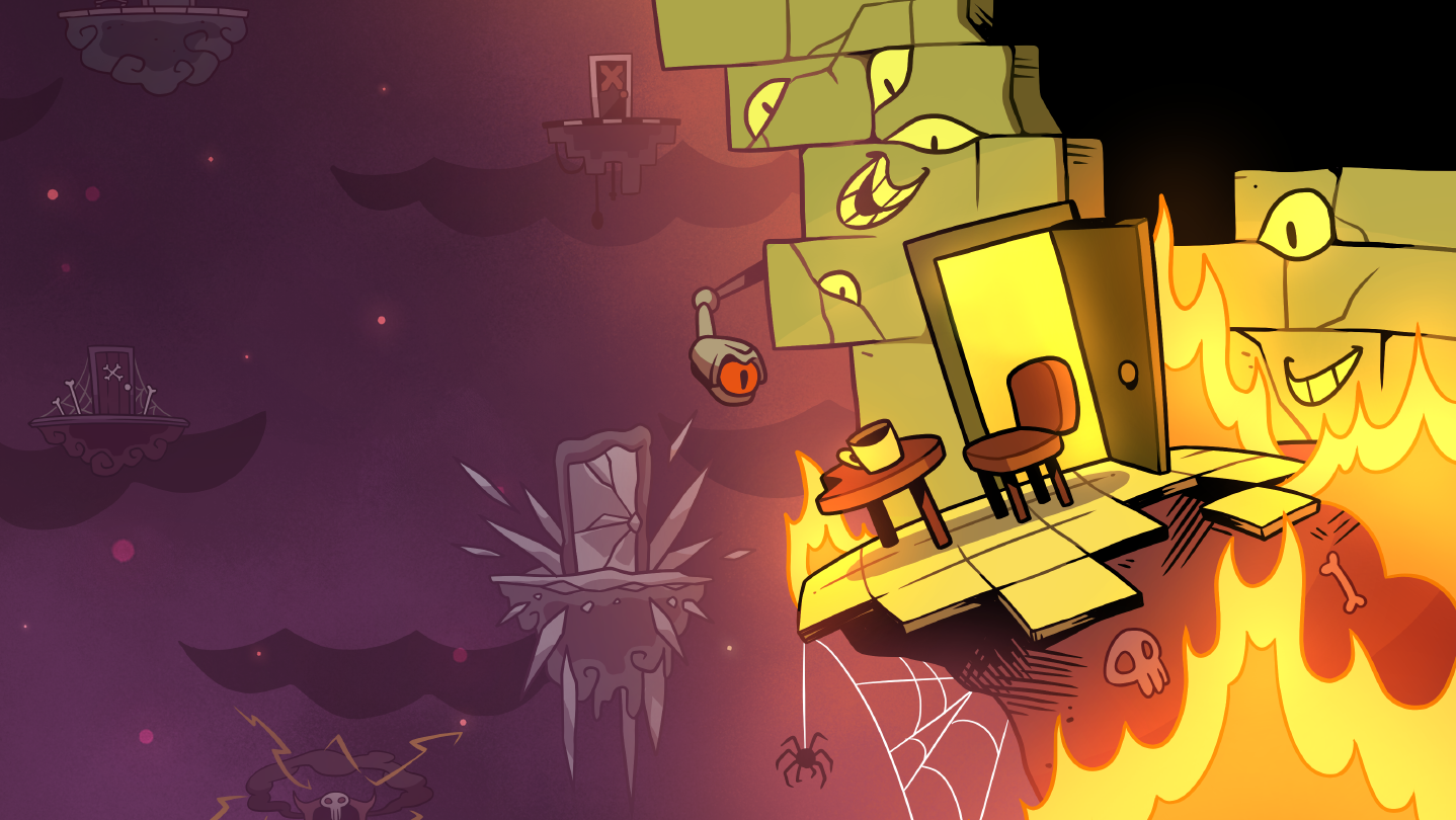 Be sure to stop at every burning Rest Point to save, sip coffee, and pretend everything is fine for a brief moment. Collect Coffee Beans as you explore; your currency used to purchase perks and refill your healing coffee cup. Keep your eyes peeled everywhere you go if your heart is set on finding every quirky collectible!