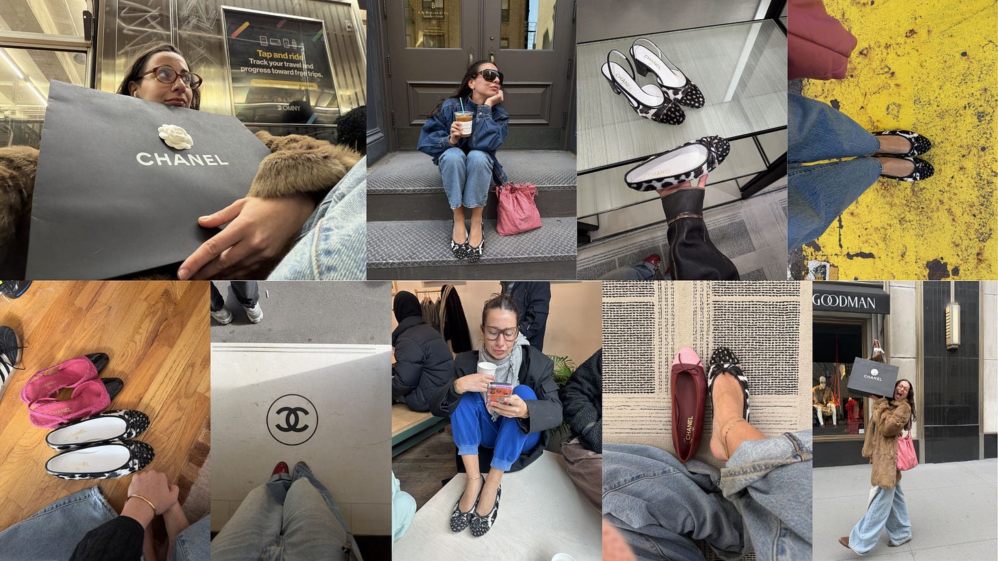 ok you know we gotta talk about the Chanaynay saga. I am not going to recount it here, you can look at my Tik Toks if you havenāt already seen, but I am obsessed with my new babies. They are perfection. This whole saga has been so fun - I have made so many new friends at Chanel and in the lines and it just reminds me how fashion can really bring people together. Isnāt it fun to be excited about things!? And share that excitement with people!!!! As I always say, be loud about the things you love!! I also love that I have become the pony hair ballet flat girl, not a bad thing to be known forā¦LOL. But of course I am now seeing and hearing from peers in the industry that this collection is becoming ācheugyā now because everyone has something, but like if you like it, who the F cares. First of all, Chanel is not cheugy, second of all, buy things because you like them, not because everyone has them or too many people have them, make the decision for yourself. Are the ballet flats everywhere now? Yep. Am I still obsessed with them? YEP 100x over. I love them and thatās all that matters!! This is how you build your personal style!!!! And this is how you have fun with fashion!! Investing in pieces that spark joy!!!