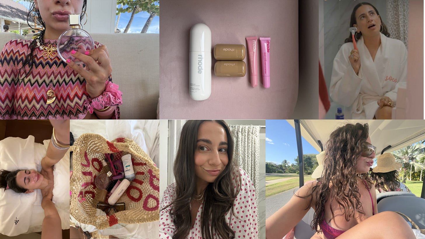 **EASY BREEZY BEAUTY PRODUCTS -** As you guys know, I am SUCH a natural beauty person. As I just mentioned, I was on a bachelorette and at Paris fashion week, two scenarios where typically you would need to UP THE GLAM. But no matter where I am, when it comes to beauty, I like to keep it effortless, and EASY. I also just feel that this vibe aligns with my personal style and makes me feel more confident and COMFORTABLE stepping into my day. Here are some products I have been loving / using on my trips that are great to travel with and give me that natural glowy vibe!! (BUTT the one time I had my makeup done during PFW you guys LOVEEED it, so I wanted to hype up my amazing makeup artist, [Lauren](https://www.instagram.com/laurenstein.makeup/), she is so talented and kind!! Check her out if you need something more glam)