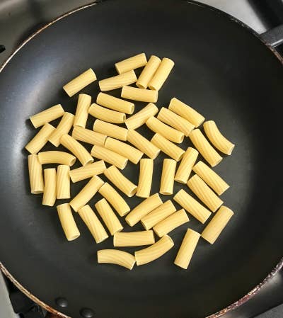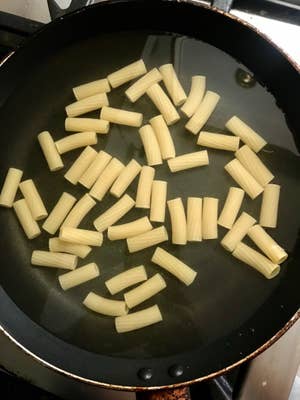 ## Hack \#6: Cook pasta in a shallow pan so you don't have to boil a big pot of water.