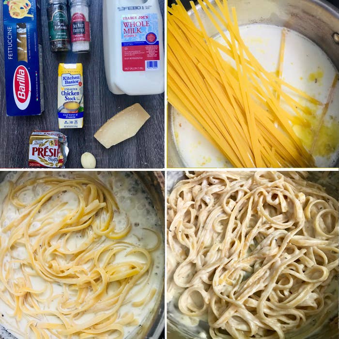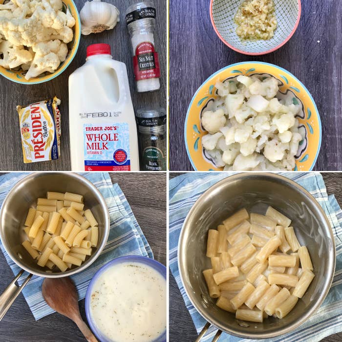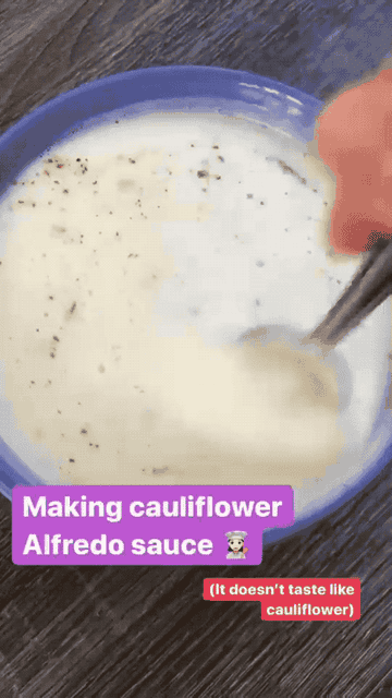 **The idea:** Alfredo sauce, which is traditionally made with loads of butter and heavy cream, is delicious...but it can be overwhelming. So when I came across a [cauliflower-based alfredo sauce recipe](https://www.justapinch.com/recipes/main-course/pasta/cauliflower-alfredo-sauce-with-spaghetti.html) on [Just a Pinch](https://www.justapinch.com/recipes/main-course/pasta/cauliflower-alfredo-sauce-with-spaghetti.html), I had to give it a try. **Instead of heavy cream, it uses just a half cup of milk — plus butter, garlic, and boiled cauliflower.**