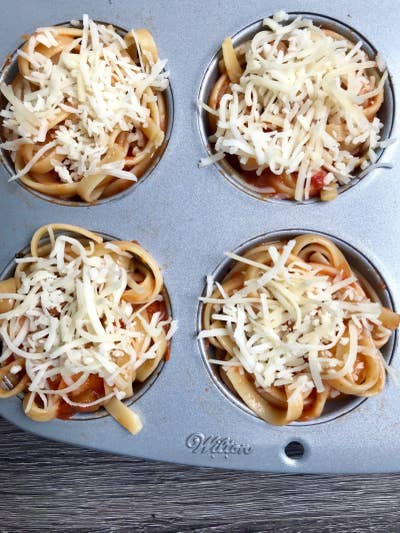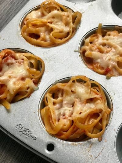 ## Hack \#9: Bake leftover spaghetti in muffin cups for a kid-friendly, freezable snack.
