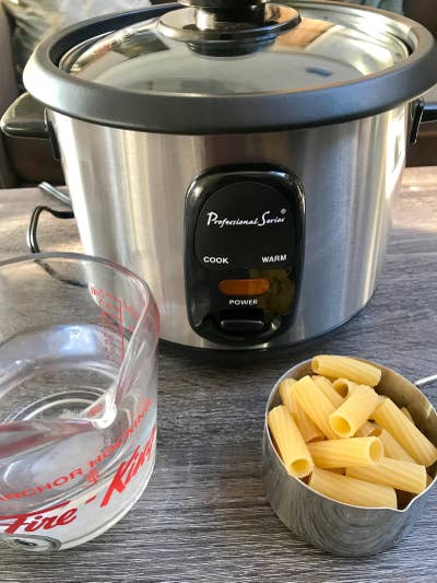 ## Hack \#8: If you don't have access to a stove, make pasta in a rice cooker for one-touch noodles.