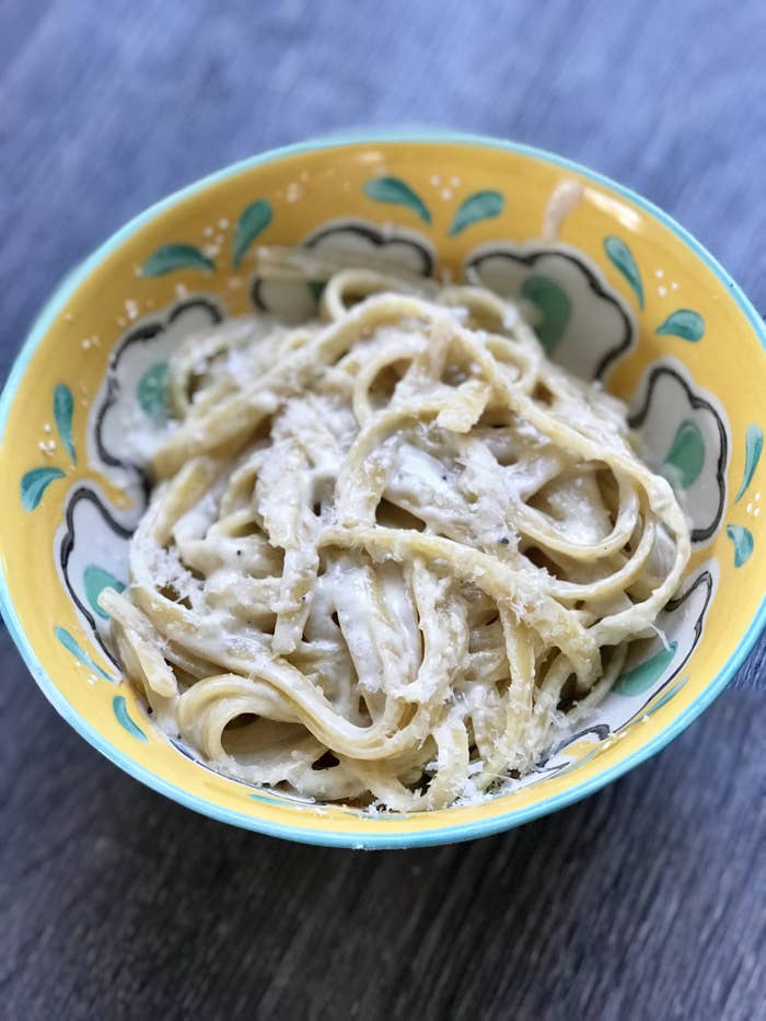 **The results:** Honestly? I couldn't believe that something this decadent tasting was made mostly from vegetables. It was garlicky and creamy and totally delicious. **It tasted lighter than classic Alfredo sauce**, but it still felt indulgent. I used whole milk to make my Alfredo, but you could very well use any type of milk you like best — like soy or almond milk. The recipe made a ton of sauce, so I used what I needed and then **I froze the leftovers in individual plastic baggies to thaw and use on everything from seafood and chicken to veggies and (of course) more pasta.**