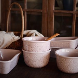 【推荐】收集时光 厚实耐用!美单小钥匙冷粉色系列 陶瓷圆碗烤盘