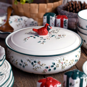 北美红雀冬青浆果欧式陶瓷餐具汤锅汤碗汤盆手绘浮雕彩绘带盖耐热
