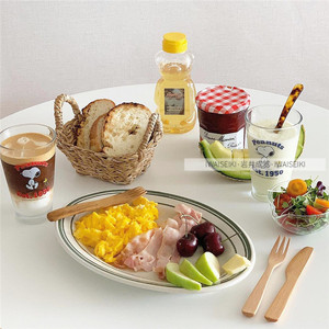 [ 日式复古绿色线条西餐盘甜品盘早餐沙拉盘 日本ins陶瓷椭圆盘圆盘 *¥*25\.8](https://item.taobao.com/item.htm?id=597922086481&scm=1007.40986.275655.0&pvid=b1bb724a-24e9-4940-b8cd-c05aaa8e1fb9)