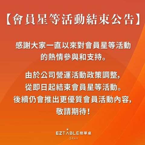 [ 自2024/1/1起,會員星等活動結束公告](https://tw.eztable.com/channel/2974)