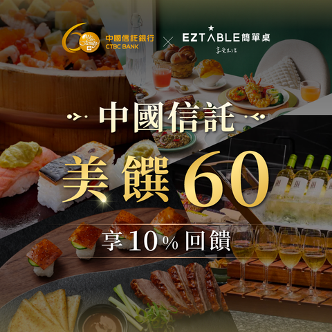 歡慶中國信託 60 週年,精選全台人氣餐廳,從米其林的極致追求到歐風的浪漫雅緻 每一口都是最純粹的味覺享受