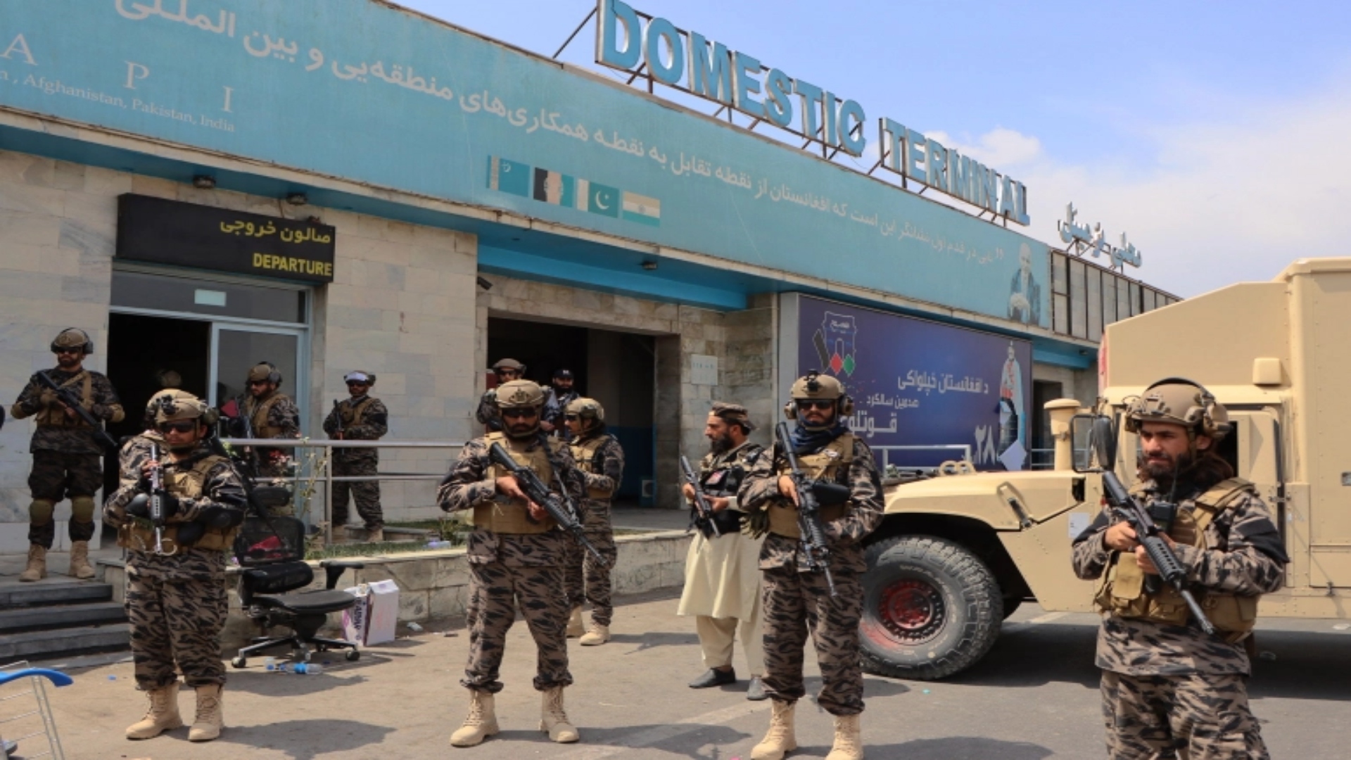 The Taliban seize Kabul airport, which has not been operational since, as the US moves its Afghanistan diplomatic team to Doha, Qatar.