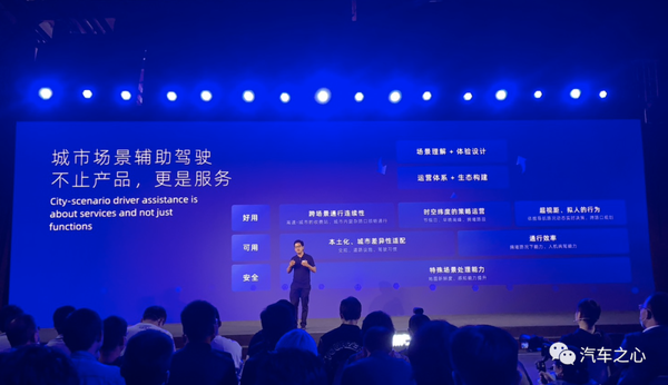 往上是「可用」,这套系统是否能适应中国城市本土化,同时面对中国不同城市的道路交通环境做到差异化适配,而且在安全的基础上还要尽可能提高通行效率,另外就是有一个非常还用的人机共驾的交互系统。