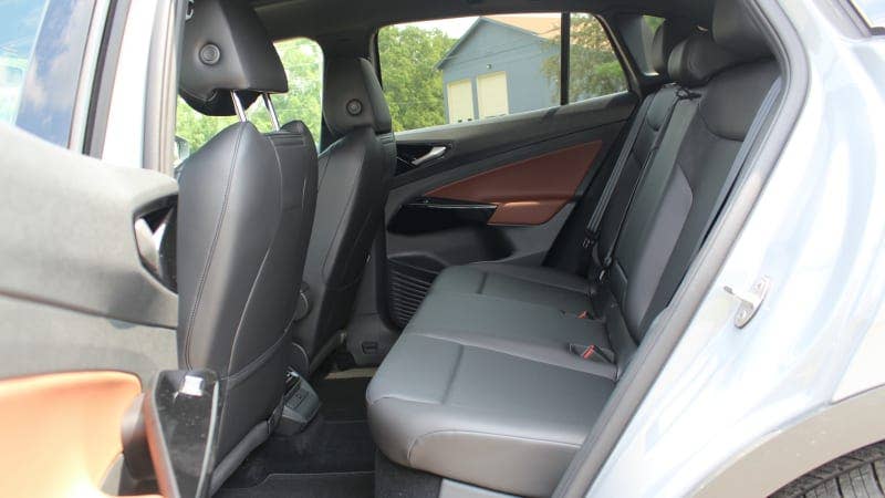 If you look at the specs, you’ll see the VW ID.4 is right in the middle of the compact crossover bunch. However, its electric architecture makes it a Granny Smith in a basket of Galas. Yes, it’s not as long as a [Honda CR-V](https://www.autoblog.com/2021/10/13/2022-honda-crv-review/) or [Toyota RAV4](https://www.autoblog.com/2021/11/15/2022-toyota-rav4-review/), for instance, but its wheelbase is considerably longer. That’s best seen in the truly gigantic back seat. We were able to fit an enormous rear-facing Britax Boulevard child seat behind both the passenger and driver seat set for a 6-foot-3 driver. That means you can fit two rear-facing car seats in the back seat, a rarity, while also equating to palatial legroom for big kids and adults. Heck, go ahead and bring along a few basketball players.