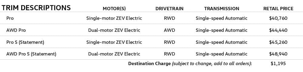 3 years of included 30-minute charging sessions at Electrify America DC Fast Charging Stations at no additional cost (slight change from MY21)***
