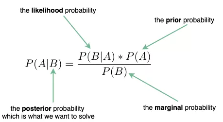 这是机器学习中最常出现的方程。**面试中出现的问题往往不是解决贝叶斯定理的问题——这些问题通常是针对数据科学家的——但有时你需要解释简单贝叶斯模型,而这个定理是核心。**