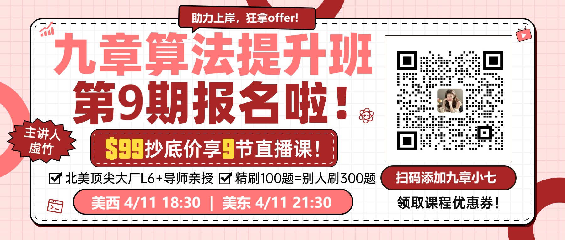 - [免费课](https://www.jiuzhang.com/seminar/)
