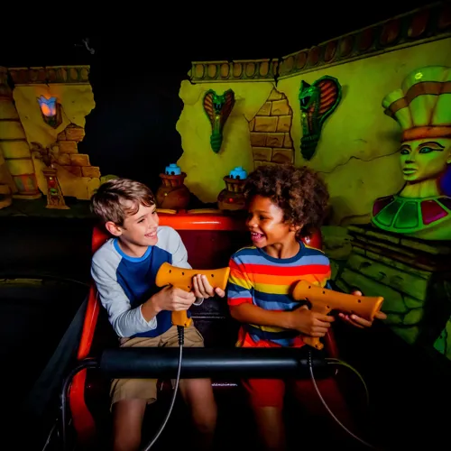 Battle LEGO mummies and skeletons aboard a dessert off-roader vehicle on this indoor laser ride. Keep track of your points to see if you get the highest score!