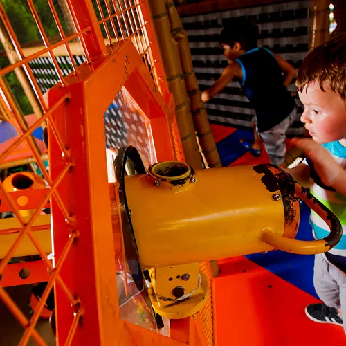 Use super-kid strength to pull yourself up to the top of the towers to enjoy and aerial view of the park before you drop back down to land!