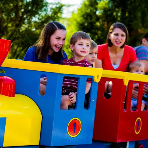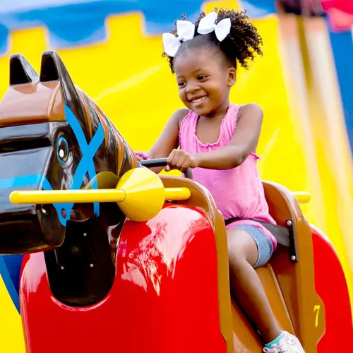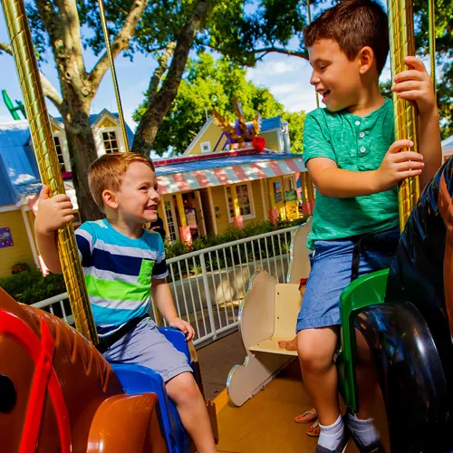 This double-decker carousel is the centerpiece of Fun Town and has many horses and seats kids can giddy up on!