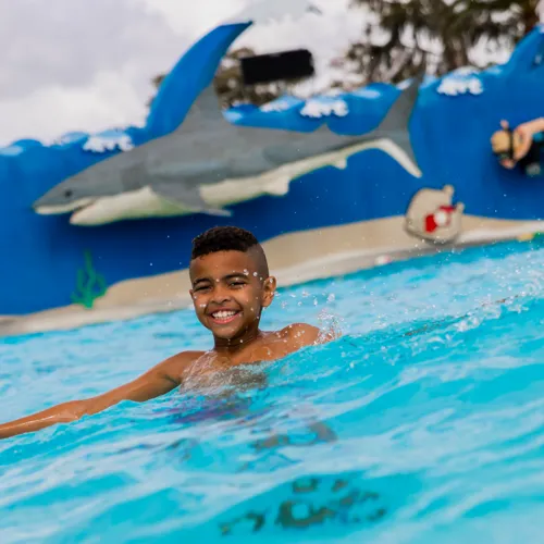Get soaked under the giant tipping bucket, climb through water play structures, and slide into fun! This interactive area is a highlight for younger guests at this water park for kids.