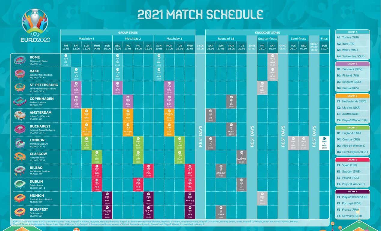 The 12 original host cities have been confirmed as venues for the finals of the tournament in the summer of 2021, and the updated match schedule was also approved accordingly.