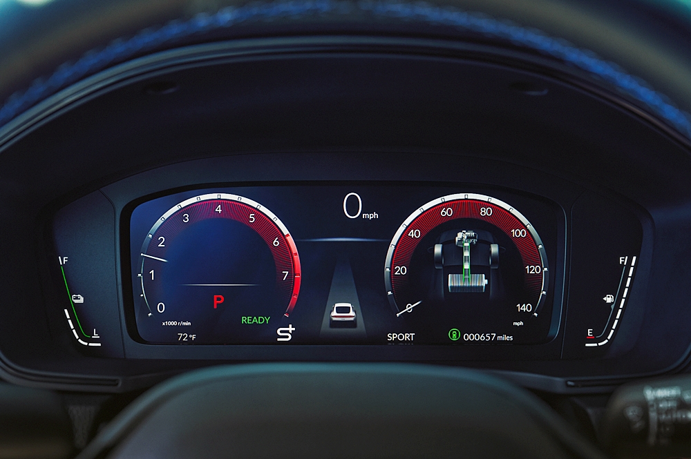 Honda S+ Shift membolehkan simulasi penukaran gear, termasuk padanan rev, pegangan gear dan bunyi enjin dipertingkat.
