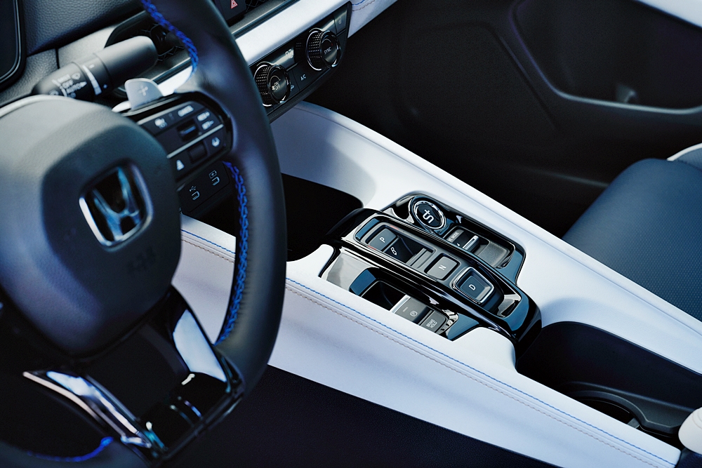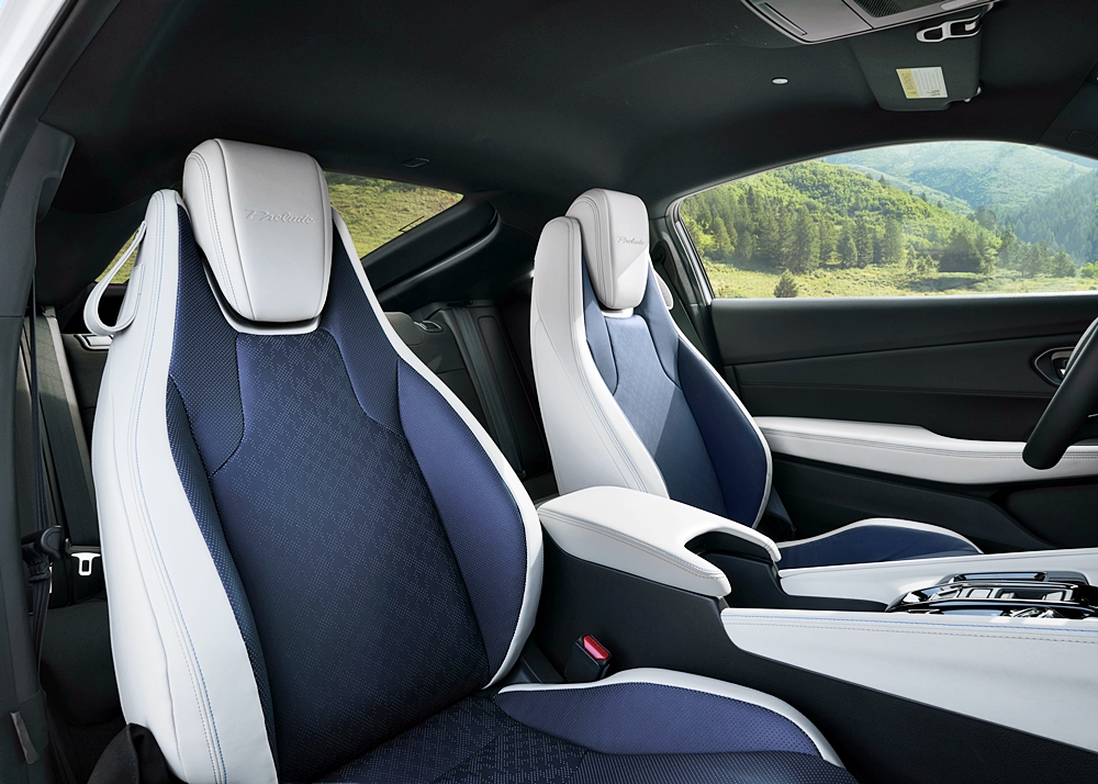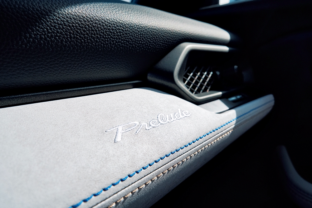 Konsol tengah & papan pemuka bawah dibalut kulit sintetik tekstur “cloud-like” dengan sulaman logo Prelude