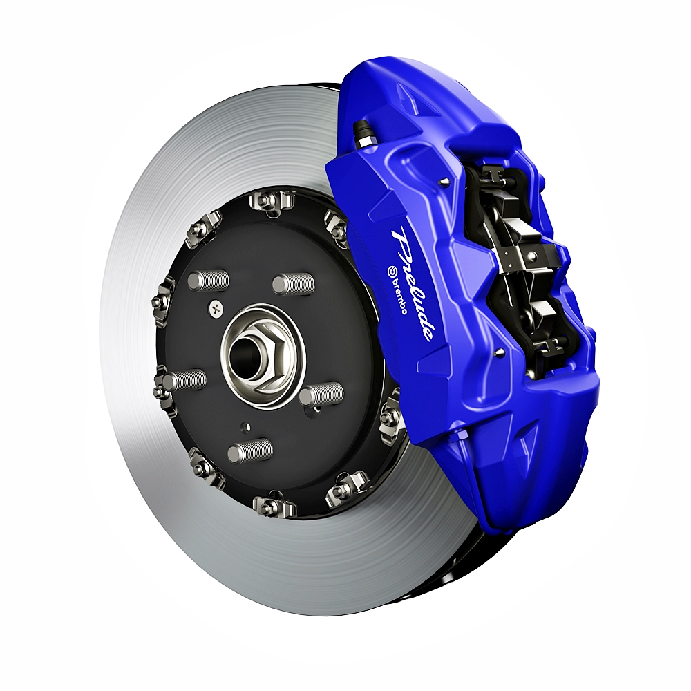 Angkup brek biru dengan logo Prelude & Brembo
